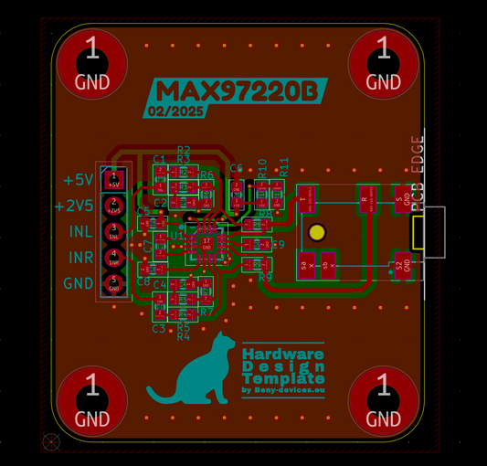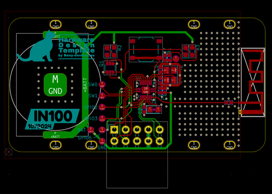 Simple and clean ECAD project. The size of the PCB is the maximum possible and the shape always follows the enclosure borders.