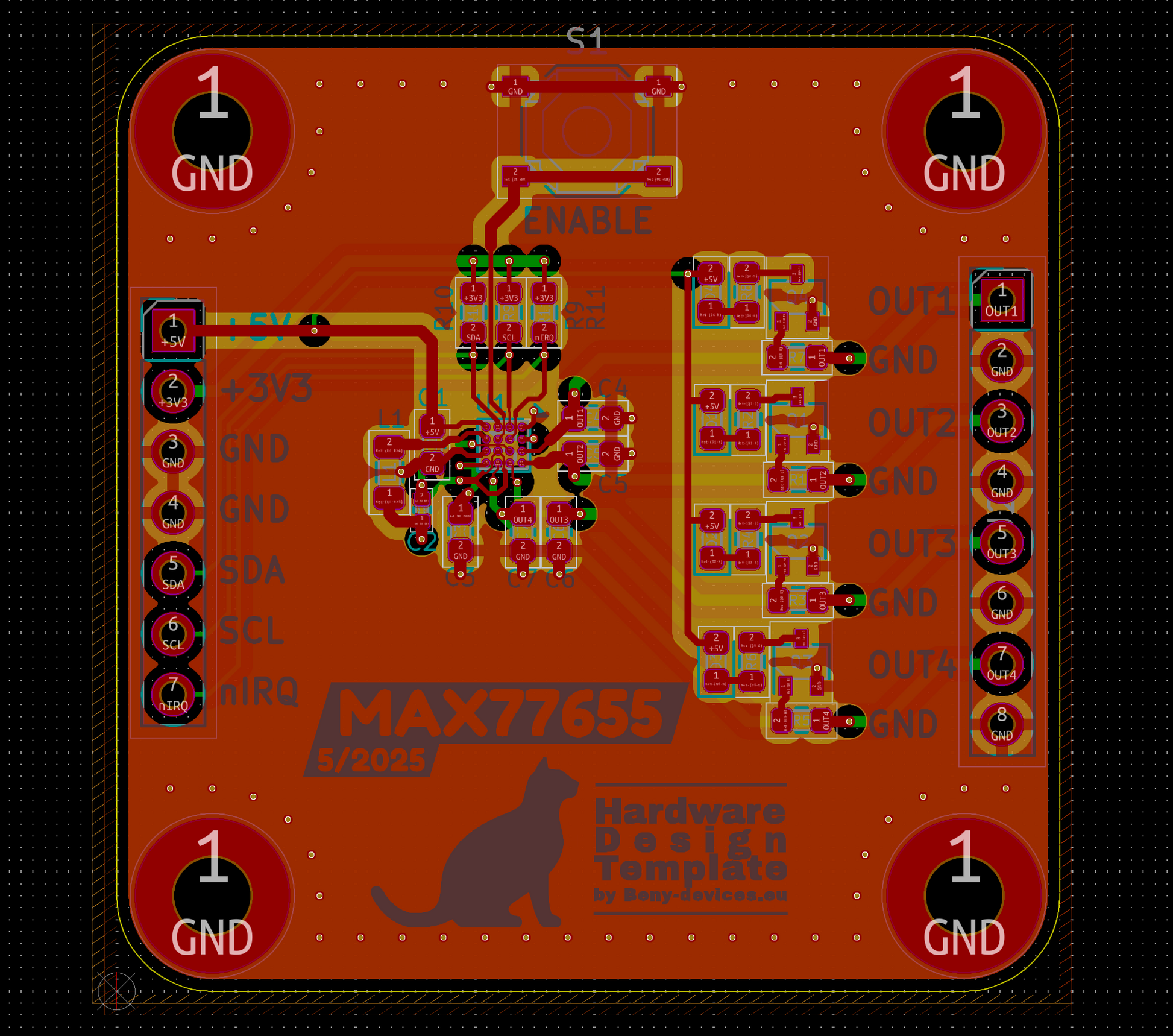 Simple and clean ECAD project. The size of the PCB is the maximum possible and the shape always follows the enclosure borders.