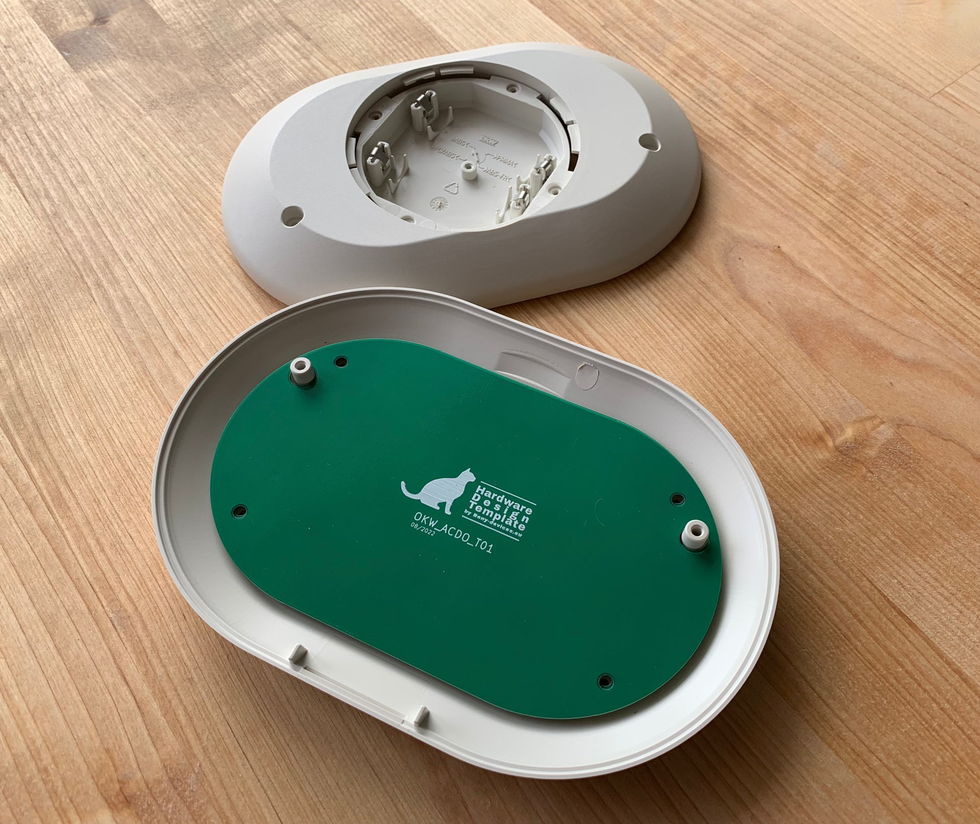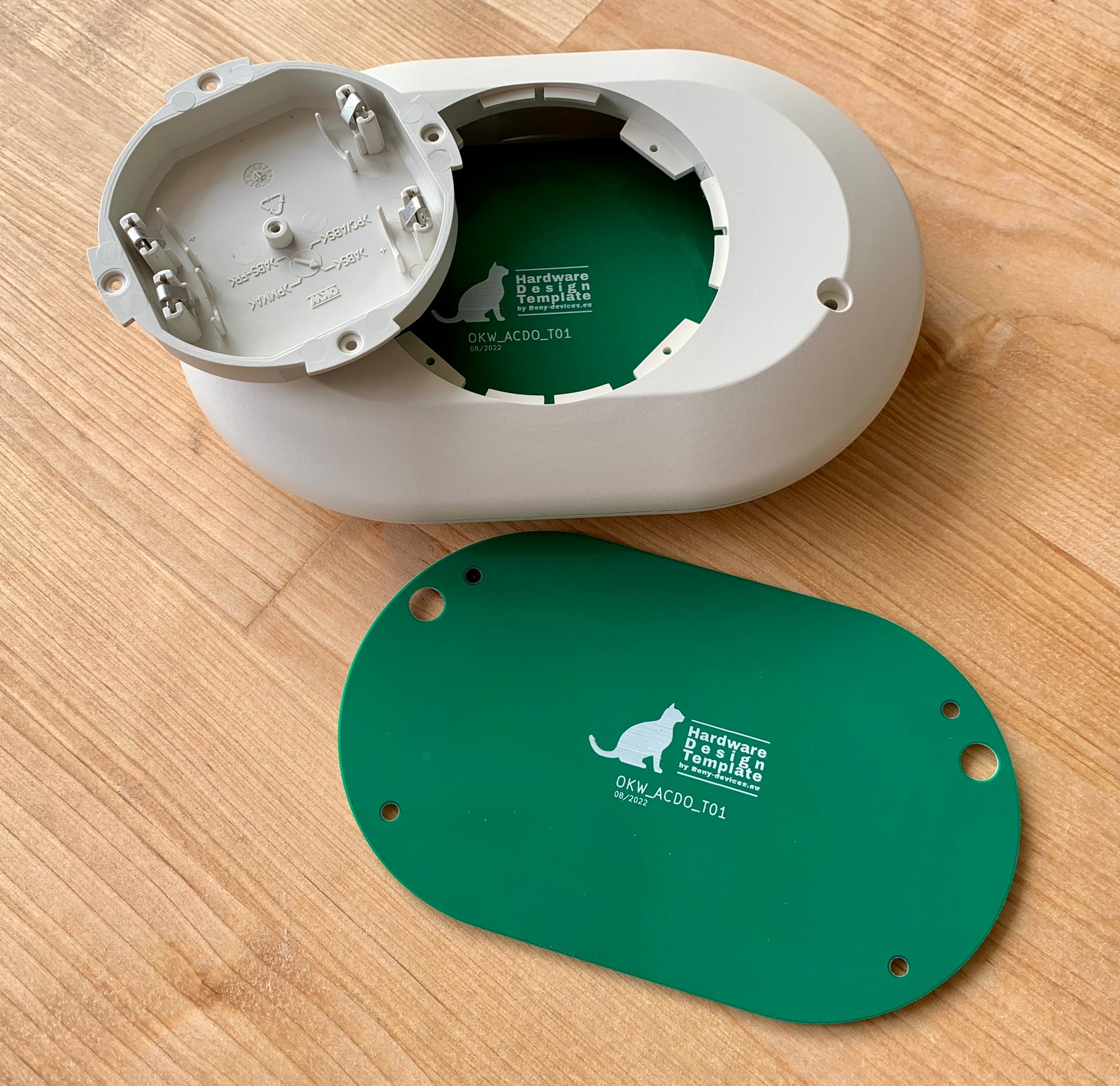 Simple and clean ECAD project. The size of the PCB is the maximum possible and the shape always follows the enclosure borders.